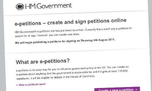 Two site launches today worth noting: the return of e-petitions, and the ‘new’ Government Digital Service blog.